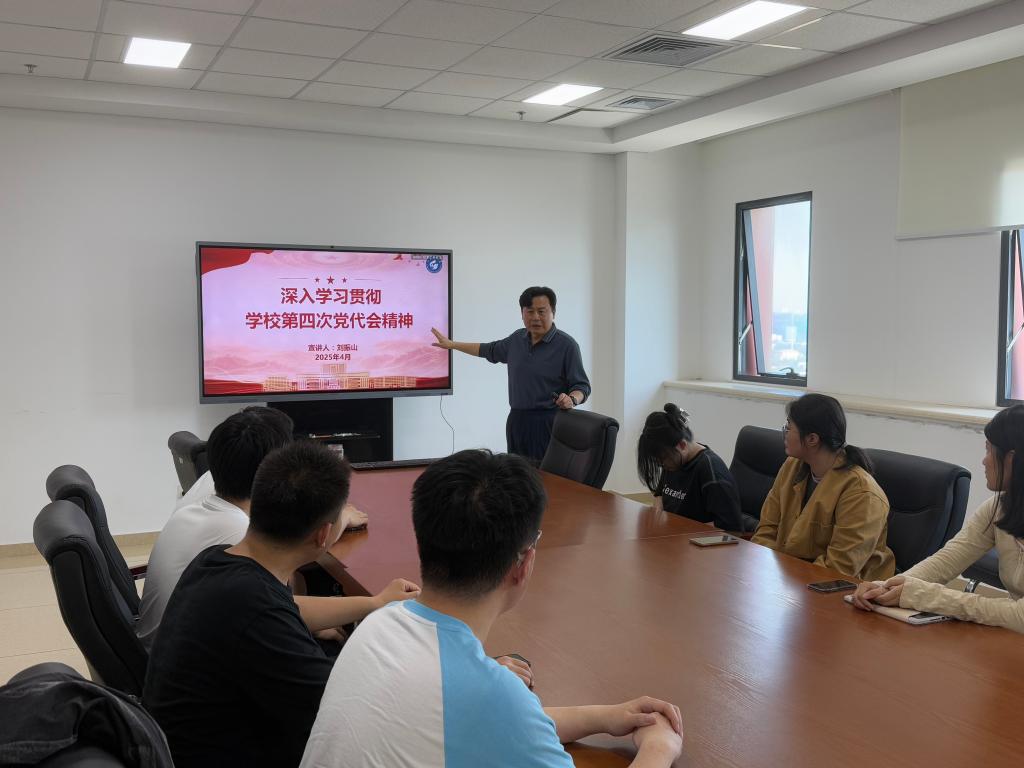 5月20日,fun88官网体育副经理刘振山在图书馆1318会议室为行政管理2021 - 1班深入解读公司第四次党代会精神。