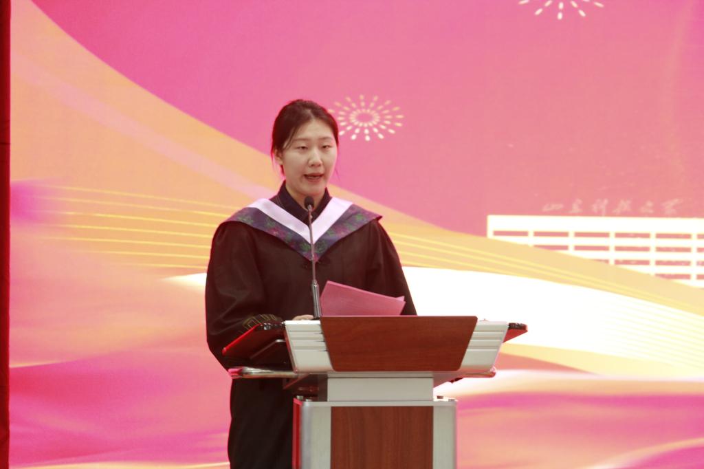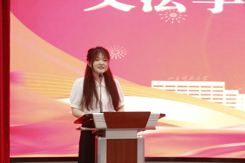 研究生毕业生代表张瑜、本科生毕业生代表邱兰茜依次上台发言,深情表达了对公司、公司、老师们的感恩和不舍,并表示在未来的日子里,会坚守家国情怀,勇担社会责任,在社会岗位上做发光发热的“文法人”。在校生代表尹淑静表达了对即将毕业的学长学姐们诚挚的祝福,她表示将以学长学姐为榜样,传承fun88官网体育脚踏实地、勤勉奋斗的精神,在求知道路上继续奋进。教师代表、2025年“最难忘的恩师”吴立志老师发言,对即将走出走出校门的2025届毕业生表达殷切希望与美好祝福,他希望同学们以专业立身,以德行致远,作善良的、有温情的、胸怀天下的文法人,保持文法人的初心和使命,以自己的专业知识和情怀温暖整个社会。