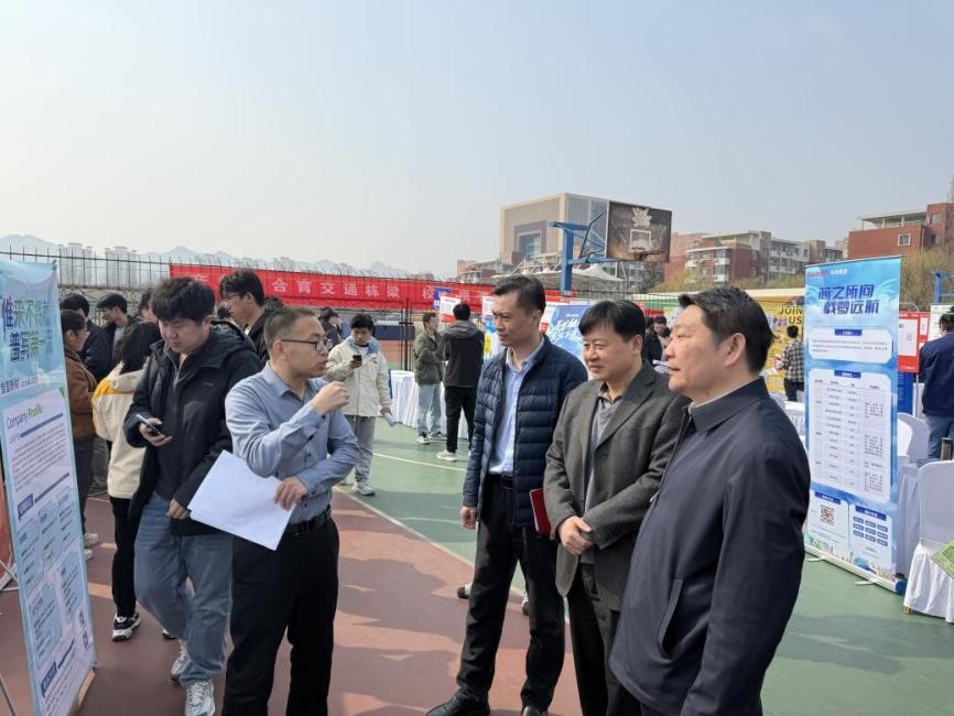 会前,公司领导班子成员、系主任、教工党支部书记、辅导员带领毕业生以及非毕业生来到公司春季校园双选会现场,与用人单位和在场学子深入交流,了解当前行业发展趋势、岗位能力要求及人才需求变化,询问毕业生的求职进展与就业意向,鼓励同学们坚定信心、把握机遇,将专业知识更好地用于服务国家和社会发展。非毕业生通过现场观摩、与企业面对面交流,提前感知职场脉搏,进一步明晰了未来的努力方向。