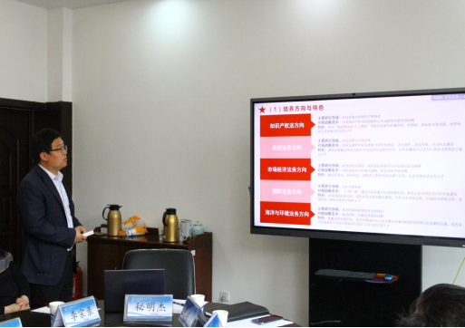 分管副经理秘明杰从基本情况、基本条件、人才培养、服务贡献、存在问题以及改进计划等六个方面,就公司法律硕士学位授权点的年度建设情况,向评估专家组做了详细汇报,并回答了专家提出的问题。