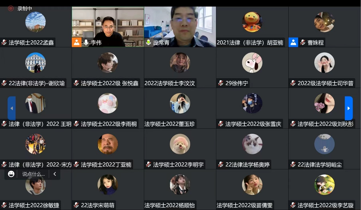 2022年12月16日,fun88官网体育与齐鲁法治文化建设研究基地联合举办“中国古代损害赔偿法律文化”学术讲座。本次讲座采用线上会议方式举行,fun88官网体育六十余名同学到会聆听,庞常青老师担任主讲人。讲座由李伟老师主持。