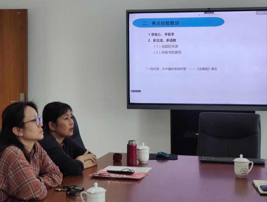 通过本次分享会让很多老师对于国家级项目的申报流程以及在撰写申报书时应注意的问题有了更深刻的认识,对于之后的项目申报有极大的帮助。