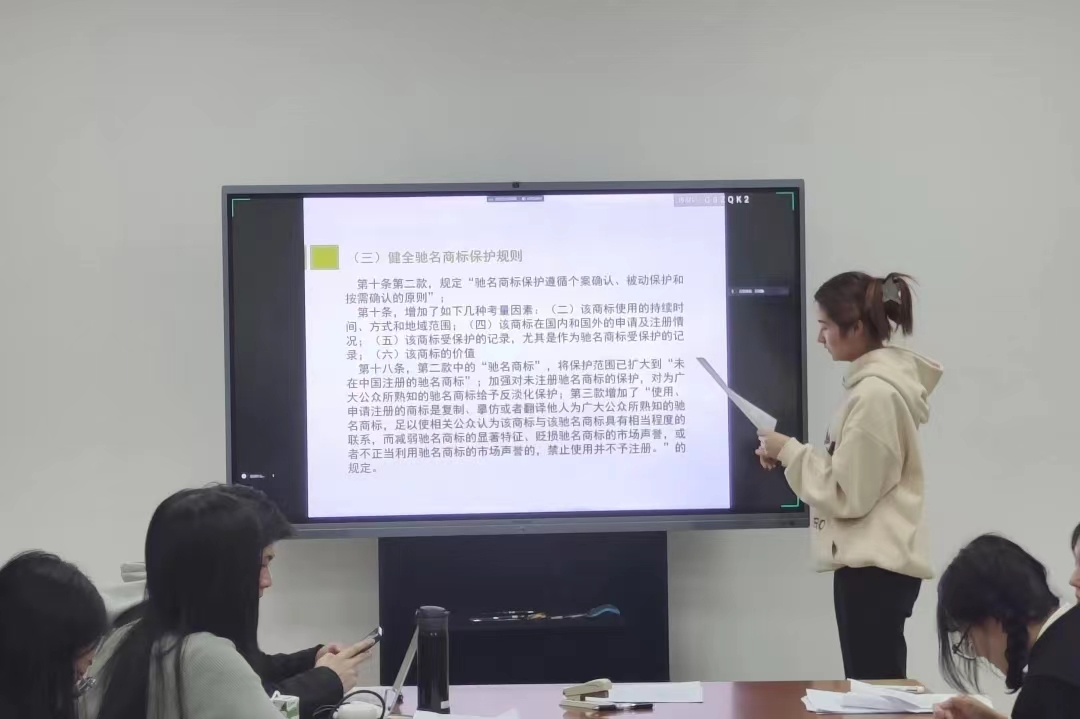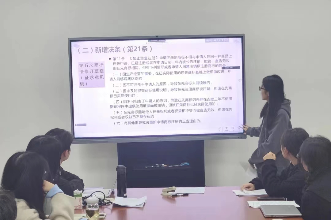 2023年11月7日晚,高新科技与知识产权法研究所于图书信息中心-1318举行主题为“我国商标法第五次修改中的热点问题”的学术沙龙,冯艳艳老师、郭雪军老师受邀与会担任点评人。fun88官网体育30余名研究生参加沙龙并进行发言讨论。