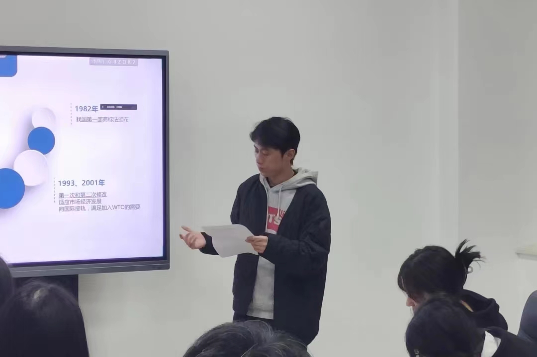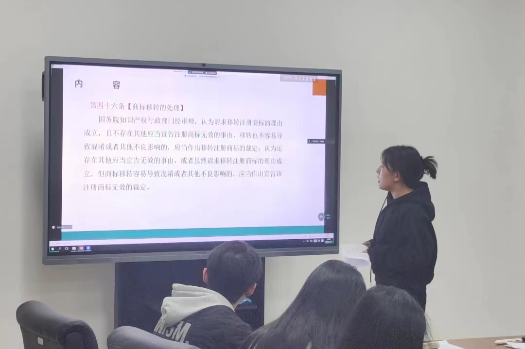 在主题发言环节,王玥鑫同学首先介绍了我国商标法第五次修改的背景,孙宏娇、赵志明同学分别就驰名商标保护规则不够健全和未注册驰名商标的跨类保护问题发表了见解,王鹏同学就商标恶意注册申请问题发表观点,陈家辉、刘晓瑞同学集中探讨了商标禁止重复申请注册问题,王一蓉、姜艳妹同学进一步对恶意注册商标强制移转制度展开了讨论,刁炳文同学就说明商标使用情况制度及其可行性进行了解读分析,周欣苗同学聚焦恶意抢注行为的惩罚问题,最后,李姿姣、杨清霞同学详细总结了本次修法中的亮点。