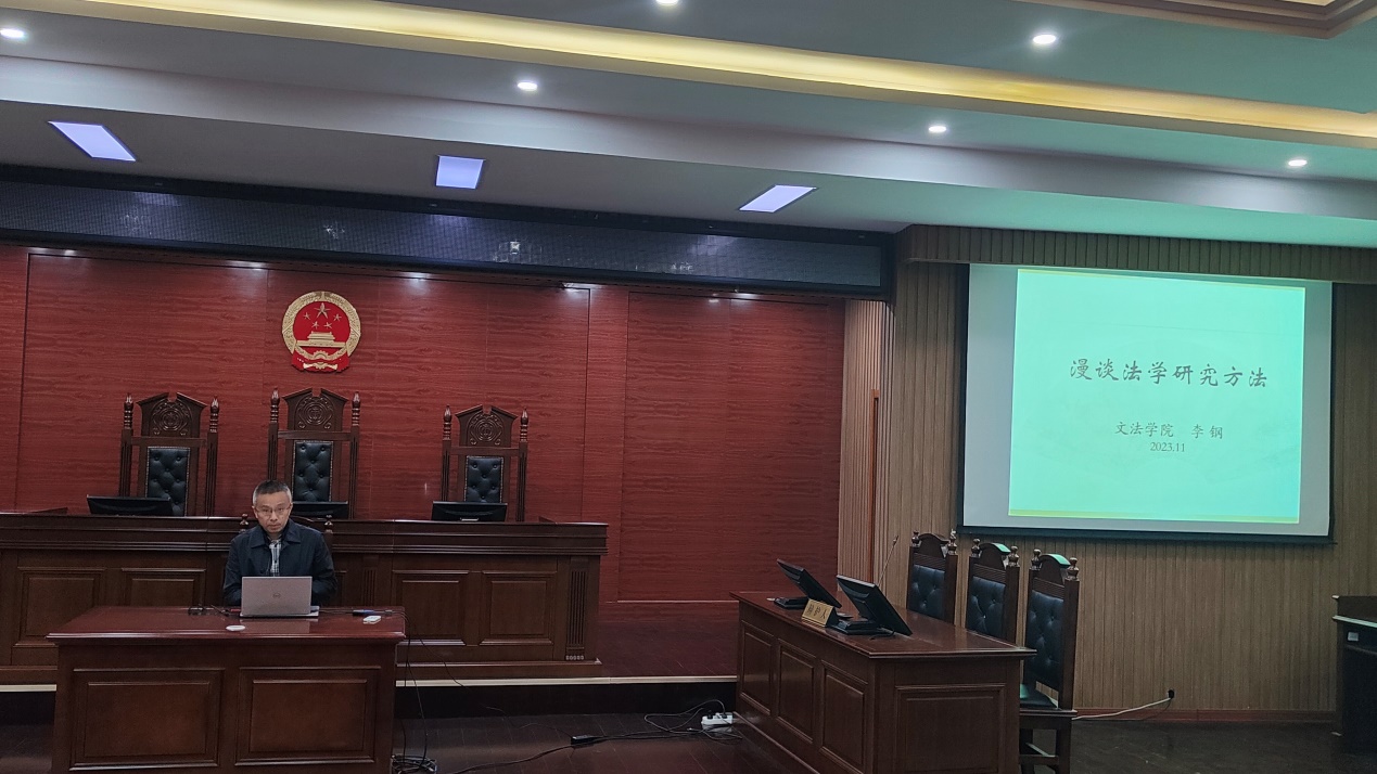 李钢老师以“漫谈法学研究方法”为主题,呈现了一堂引人入胜的课程。他首先清晰地阐述了学术论文写作方法和学术研究方法的核心概念,并强调批判性思维在学术研究中的不可或缺的地位。随后,李钢老师详尽地介绍了法学研究的主要方法,并向同学们推荐了一系列有助于培养法学思维的经典书目。在课程的最后部分,李钢老师针对如何在论文写作中恰当地选择研究方法提供了宝贵建议。他从微观、中观和宏观三个不同的层面,系统地梳理了论文选题与研究方法之间的内在联系,为同学们的论文写作提供了有力的指导,使同学们受益匪浅。