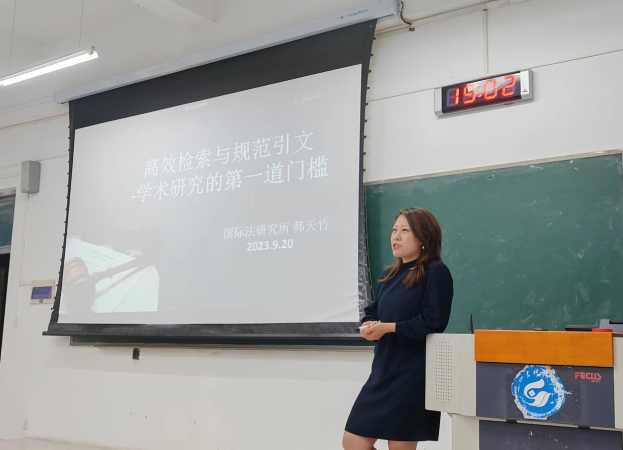 韩天竹老师从检索内容、检索技巧、文献综述写作以及规范引文的重要性四个方面展开阐述。韩老师强调,文献成就论文,一篇论文的写作,分为检索期、综述期和参考文献整理期,前期检索要懂得如何检索以及妥当管理检索的文献,综述期明确文献问题并分析总结文献,参考文献整理期要规范收纳文献。