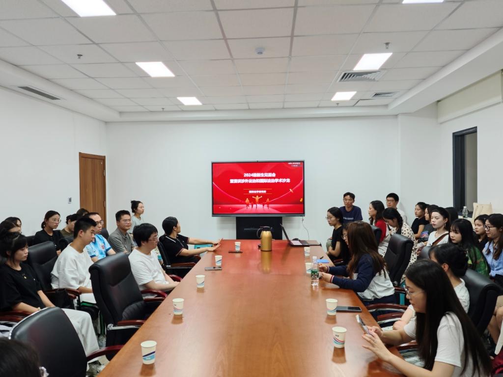 2024年9月6日晚,国际法研究所于图书馆1318会议室举行了“2024级新生见面会暨漫谈涉外法治与国际法治”学术沙龙,韩天竹、单娟、王艺、李猛以及牟青老师出席见面会并参与沙龙活动。2024级全体研究生以及其他年级研究生共计50余名,通过线上线下结合的方式参加了本次活动。