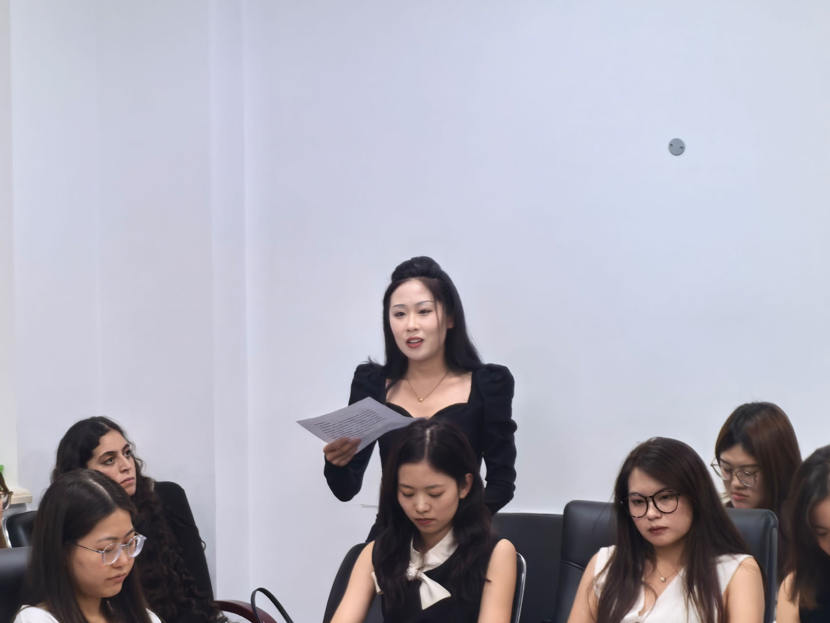 接着,曹晓荣同学分享了他在法考、论文写作和学术竞赛方面的经验。谈及法考,曹同学强调了持之以恒的重要性,他鼓励同学们即使在备考的最后阶段也不应有丝毫松懈。对于论文写作,他建议同学们尽早开始准备,从选题到资料搜集,从大纲构思到初稿撰写,每一步都要精心策划,这样才能在写作过程中游刃有余。谈到学术竞赛时,他强调竞赛不仅是展示学术成果的平台,也是提升技能和扩展视野的宝贵机会,并激励同学们勇敢地迈出舒适区积极参与各类竞赛。在同学们的介绍结束后,各位老师对新生在国际法学习中可能遇到的问题和误区进行了解答和纠正并对同学们未来的学习规划进行了方向上的指导。
