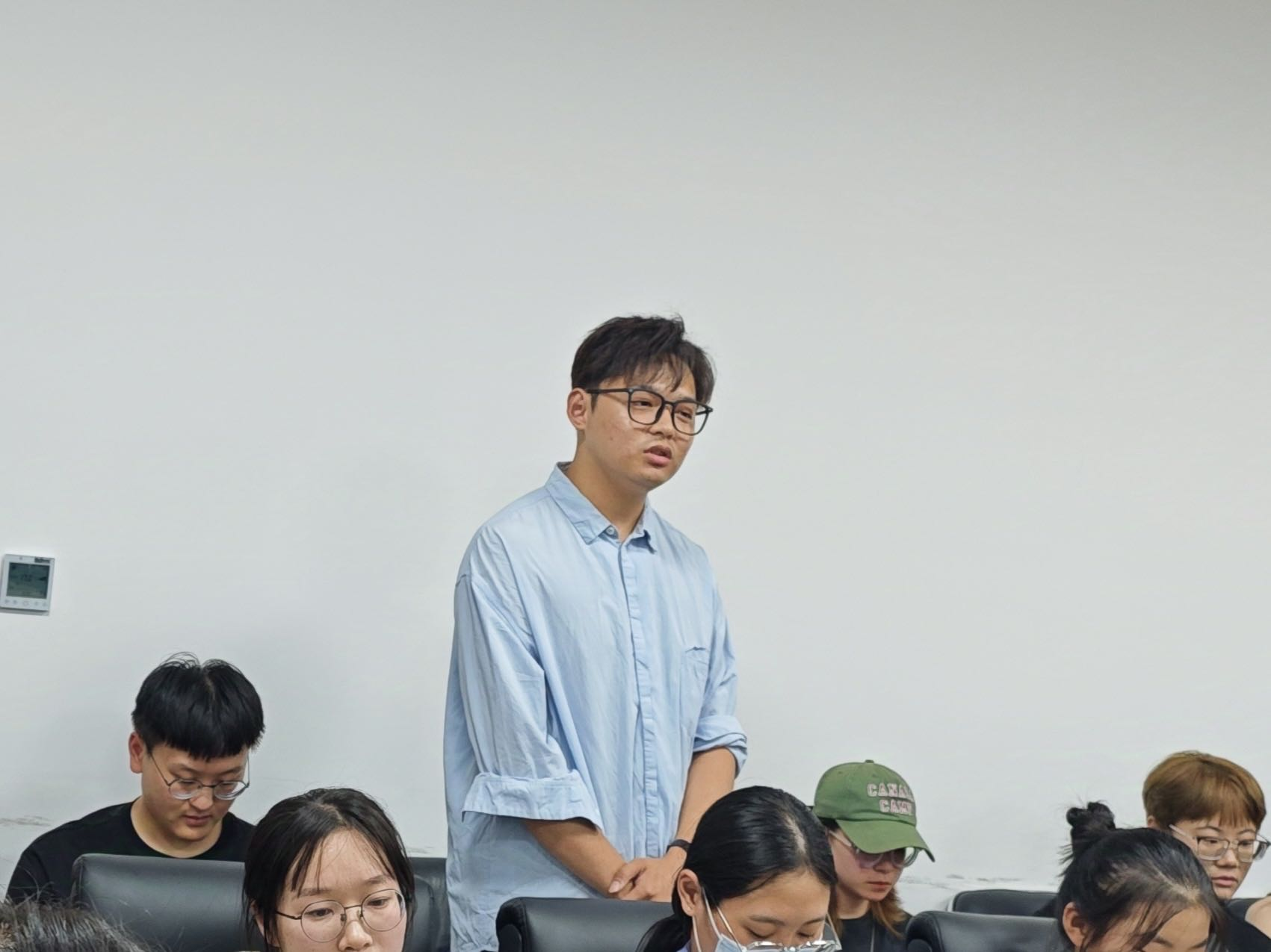 随后,研究生一年级的同学们逐一进行了自我介绍,并汇报了未来三年的学习规划。在研究生一年级的同学介绍完毕后,研究生三年级的张瑜同学作为代表,分享了自己的科研经验。她提出了四点建议:第一,做好规划,建议同学们制定月计划和日计划;第二,要有主动性,主动联系导师并与导师交流近期的学习成果与困惑;第三,建立属于自己的科研网络,在科研道路上遇到问题,不仅可以寻求导师的帮助,也可以向同门、学姐学长寻求帮助;第四,科研压力应对,科研往往是一个艰苦并且漫长的过程,因此,学会管理压力并关爱自己也是十分重要的。张瑜同学的精彩分享赢得了在场师生的热烈掌声。