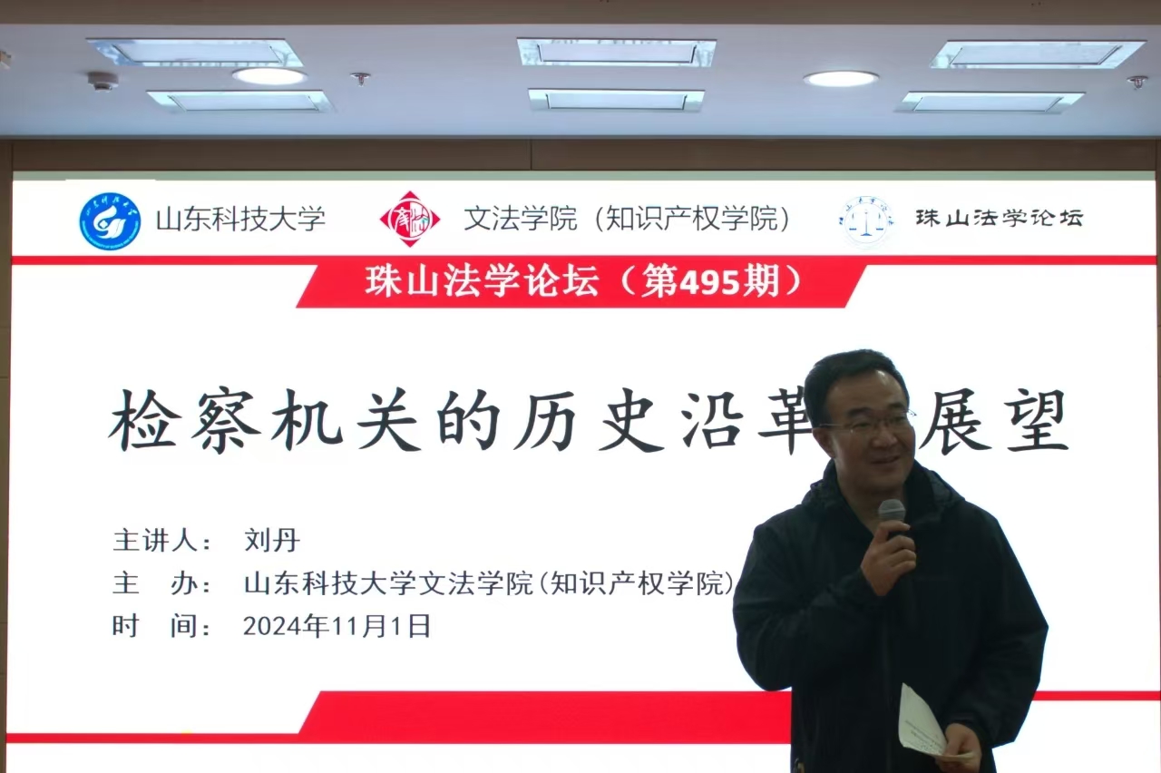 2024年11月1日下午,在图书信息中心一楼尚学讲堂,珠山法学论坛成功举办了一场题为“检察机关的历史沿革及展望”的学术讲座。本次讲座由河南省卫辉市人民检察院副检察长刘丹检察官主讲,公司法学专业本科生、以及法学硕士、法律硕士研究生共计两百余人聆听了讲座。讲座由fun88官网体育副经理秘明杰主持,诉讼与司法制度研究所教师李贵扬做了专业点评。