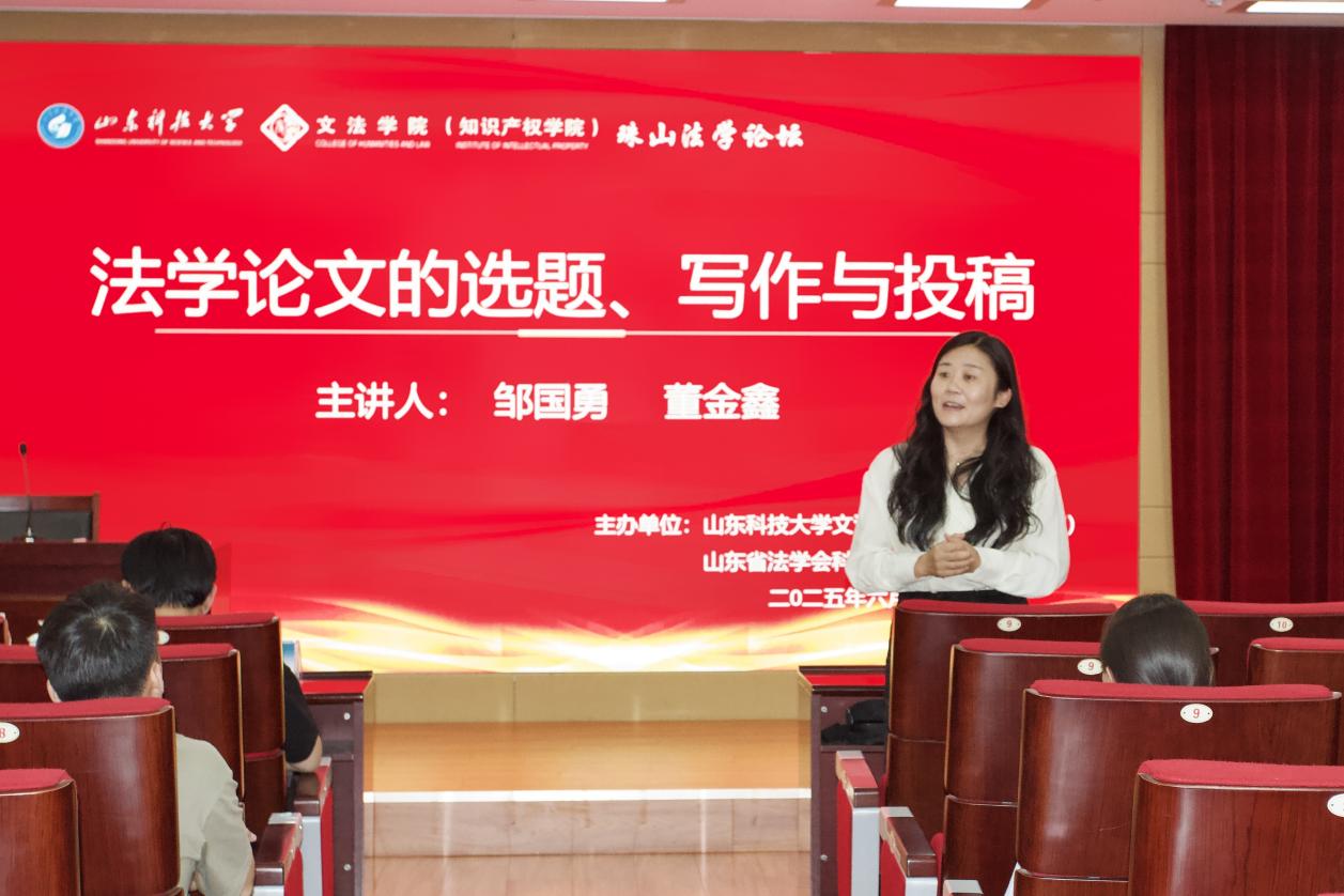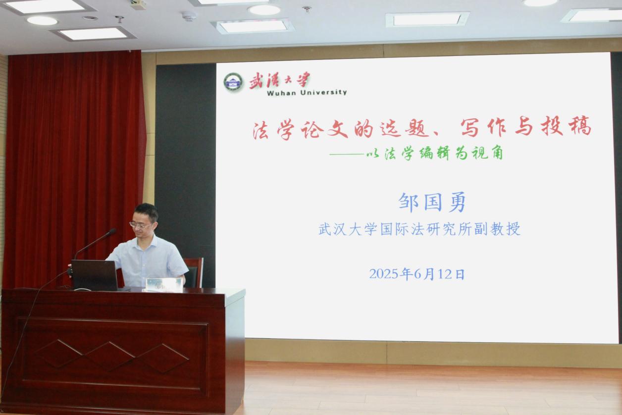 2025年6月12日上午,在fun88官网体育图书信息中心尚学讲堂举办了题为“法学论文的选题、写作与投稿”的学术讲座。本次讲座由武汉大学国际法研究所副教授邹国勇、中国石油大学副教授董金鑫主讲,公司fun88官网体育多名教师及研究生参加。
