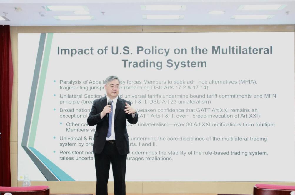 本次讲座,Y.S.Lee教授主要从WTO上诉机构,301条款行动、利用国家理由加征关税和普遍的互惠关税四个方面展开美国贸易政策对多边贸易体系的影响。Y.S.Lee教授用中国就美国加征关税向WTO提起诉讼,专家组已裁定美国违规,但因上诉机构瘫痪,裁决无法生效来说明WTO上诉机构瘫痪对全球贸易产生的不利影响。并强调美国依据《1974年贸易法》第301条对中国商品加征关税直接违反了GATT最惠国待遇原则,并导致全球保护主义趋势加强。Y.S.Lee教授用通俗易懂的例子指出美国普遍关税对全球矛盾的激化:“将贸易逆差简单归咎于‘不公平贸易’,就像去商店购物产生逆差,却指责商店‘不公平’—— 美国逆差本质是消费者选择中国商品的结果。”最后Y.S.Lee教授总结,美国政策正从阻止任命导致上诉机构瘫痪、单边制裁泛滥、安全条款滥用和关税约束失效这四个方面破坏 WTO 体系和全球贸易。
