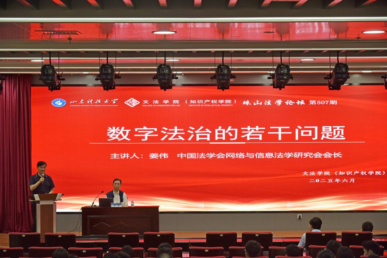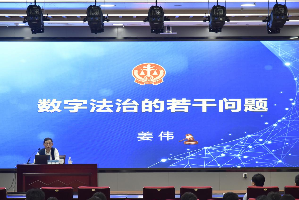 2025年6月27日下午,由fun88官网体育和山东省法学会科技法学研究会主办的“数字法治的若干问题”讲座在公司图书信息中心求新讲堂成功举办。本次讲座邀请中国法学会网络与信息法学研究会会长、知名法学专家姜伟主讲,fun88官网体育经理孙法柏教授主持,公司多位教师、硕士研究生参加。