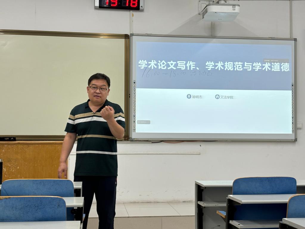 秘明杰老师围绕学术论文写作、学术规范与学术道德展开讲座。关于学术论文写作,秘老师从学术论文是什么、为什么要写学术论文、怎样写好学术论文三个方面展开具体讲解,让同学们深入了解学术论文写作的重要性。他指出,法学专业论文的写作需要培养选题意识、论证意识、读者意识、风格意识,应当学会从多种途径和渠道获取学术信息,并应在写作过程中要合理把握论文结构模式,做到环环相扣、逻辑严密。关于学术规范,秘老师强调学术论文写作一定要严格遵守学术引用规范,正确使用注释,严谨治学、遵纪守法,尊重他人的研究成果,反对学术不端行为。