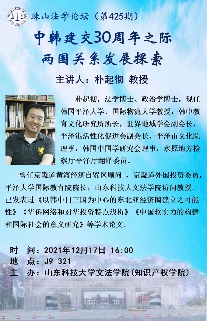 【讲座通知】中韩建交30周年之际两国关系发展探索