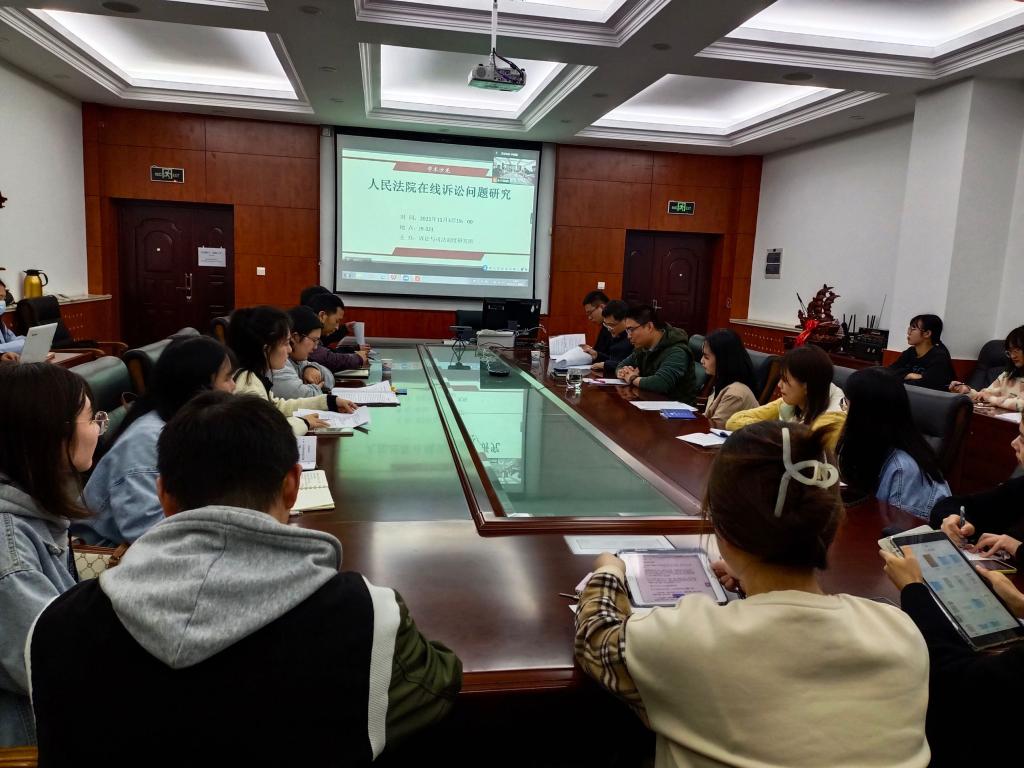 2021年11月3日晚,fun88官网体育诉讼与司法制度研究所在J9-321成功举办了学术沙龙活动,本次沙龙以“人民法院在线诉讼问题研究”为主题,采取线上线下相结合的形式,本所吴立志、王次宝和孙明泽三位老师线下参加,山东师范大学隋璐明老师应邀线上出席,研究生近30人参加沙龙活动。