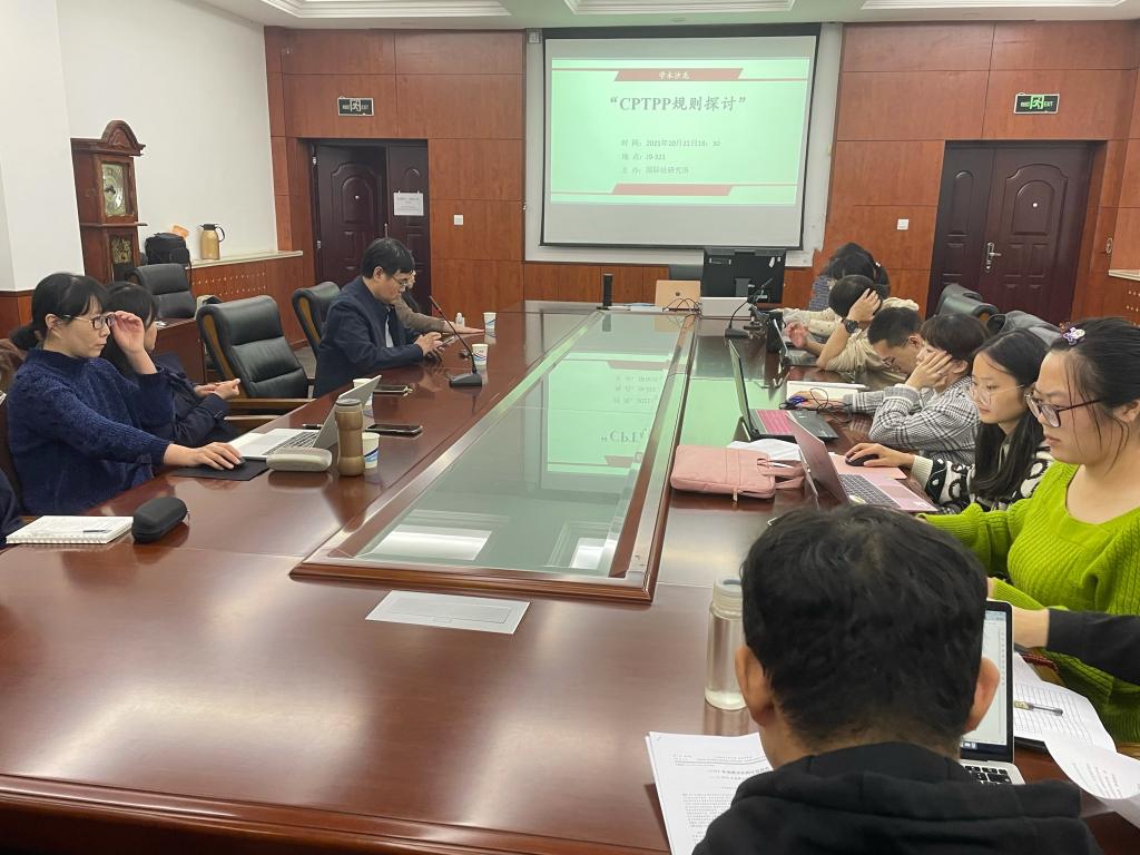 2021年10月21日晚,fun88官网体育国际法研究所在J9-321成功举办了主题为“CPTPP规则探讨”的学术沙龙。沙龙采取线上线下相结合的形式,研究所孙法柏、韩天竹、单娟和王艺等四位老师受邀出席,研究生近30人参加了本次活动。