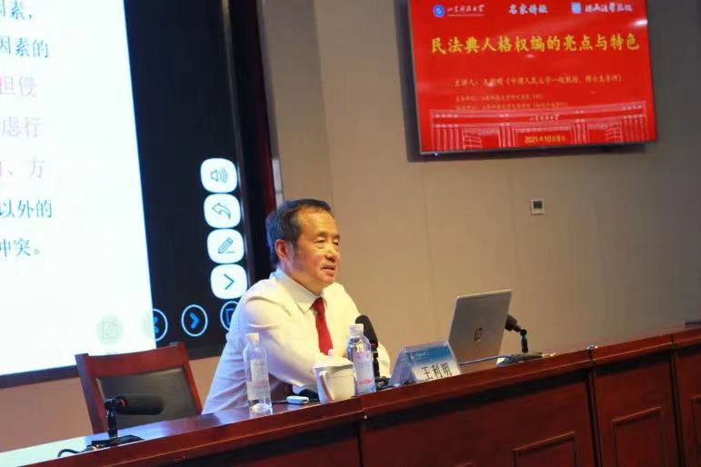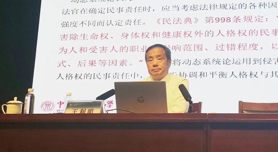 报告会伊始,王利明教授首先从我国民法典人格权独立成编的中国特色和时代特色讲起,指出我国民法典强化了法律对人格权的保护、对人格尊严的维护,确认了人格权保护的独特方式,注重事前预防与事后救济相结合,回应了互联网、高科技、大数据等科技爆炸和科技进步带来的时代问题。学术报告过程中,王利明教授结合现实、疑难、鲜活的实际案例,详细阐明了我国民法典对各种新发典型案件的思考与回应,解读了动态系统论在我国民法典人格权编中归责原则适用中的作用。