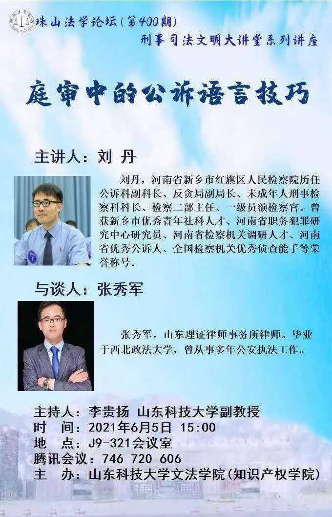 【讲座通知 】 庭审中的公诉语言技巧