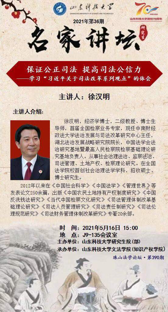 【讲座通知】保证公正司法 提高司法公信力——学习“习近平关于司法改革系列观点”的体会