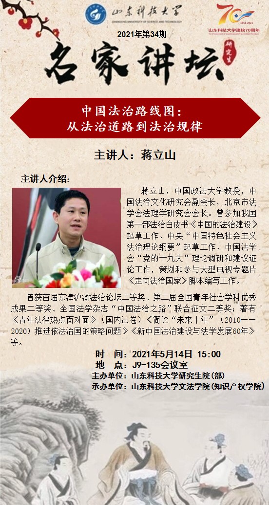 【讲座通知】中国法治路线图;从法治道路到法治规律