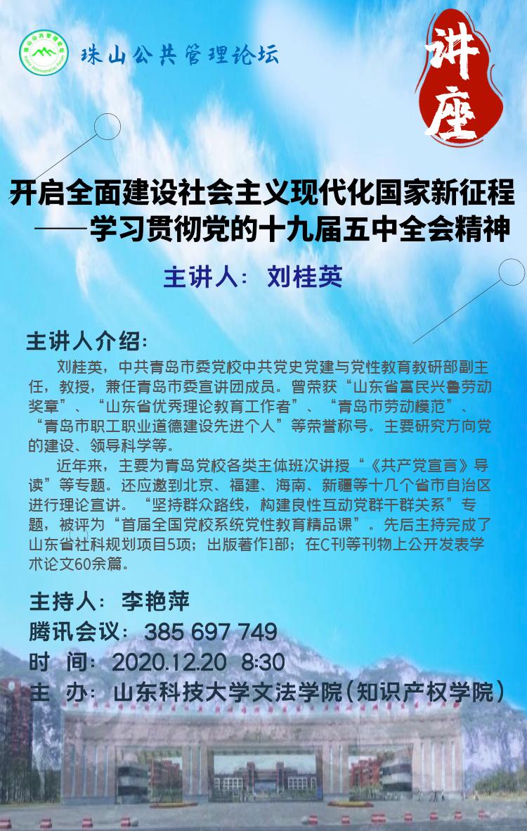 【讲座通知】开启全面建设社会主义现代化国家新征程--学习贯彻党的十九届五中全会精神