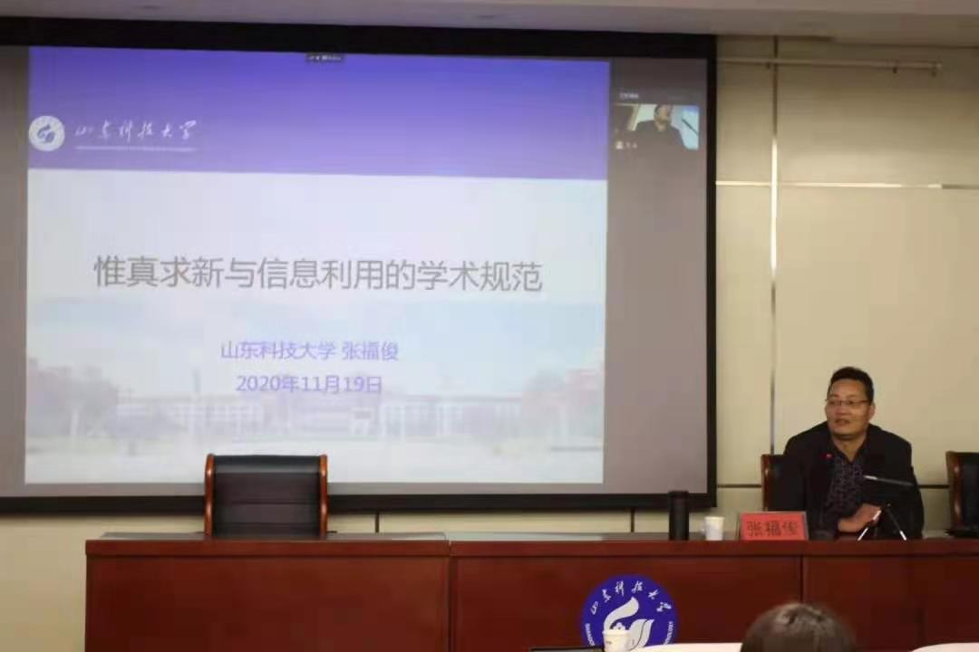 2020年11月19日,研究馆员、情报学硕士生导师张福俊教授为fun88官网体育师生作题为“惟真求新与信息利用的学术规范”的学术讲座,本次讲座采用线上与线下相结合的形式,由秘明杰副经理主持。