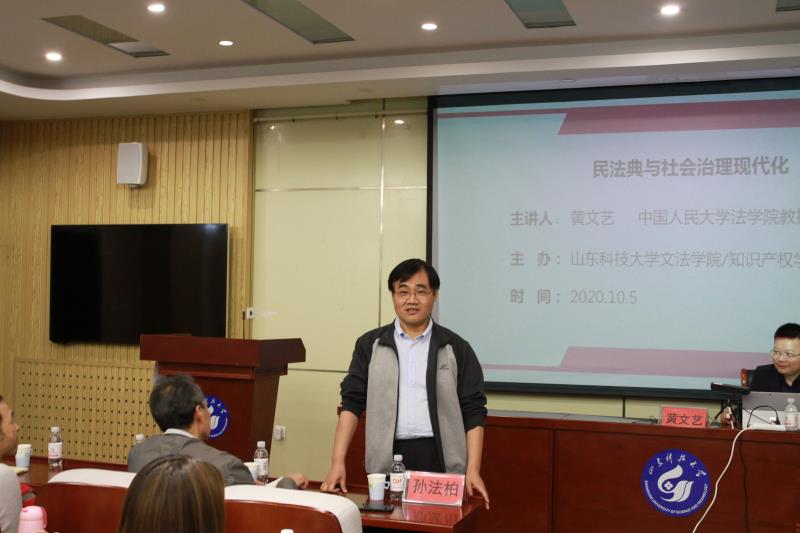 2020年10月5日晚,中国人民大学法公司博士生导师、市域社会治理研究院经理、中国法学会比较法学研究会副会长黄文艺教授,应邀为fun88官网体育师生作题为“民法典与社会治理现代化”的学术讲座。本次讲座由经理孙法柏教授主持,采取了线上线下相结合的方式进行。