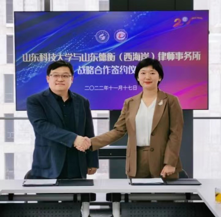11月17日下午,fun88官网体育与山东德衡(西海岸)律师事务所战略合作签约仪式暨fun88官网体育教学实习基地揭牌仪式,在山东德衡(西海岸)律师事务所成功举办。fun88官网体育副经理秘明杰、法学系主任吴立志、专业课教师刘兵和杨厚瑞,山东德衡(西海岸)律师事务所主任张晓暄、执行主任麻方亮、工会主席及妇委会主任王雪妮、青工委主任刘宁出席活动。
