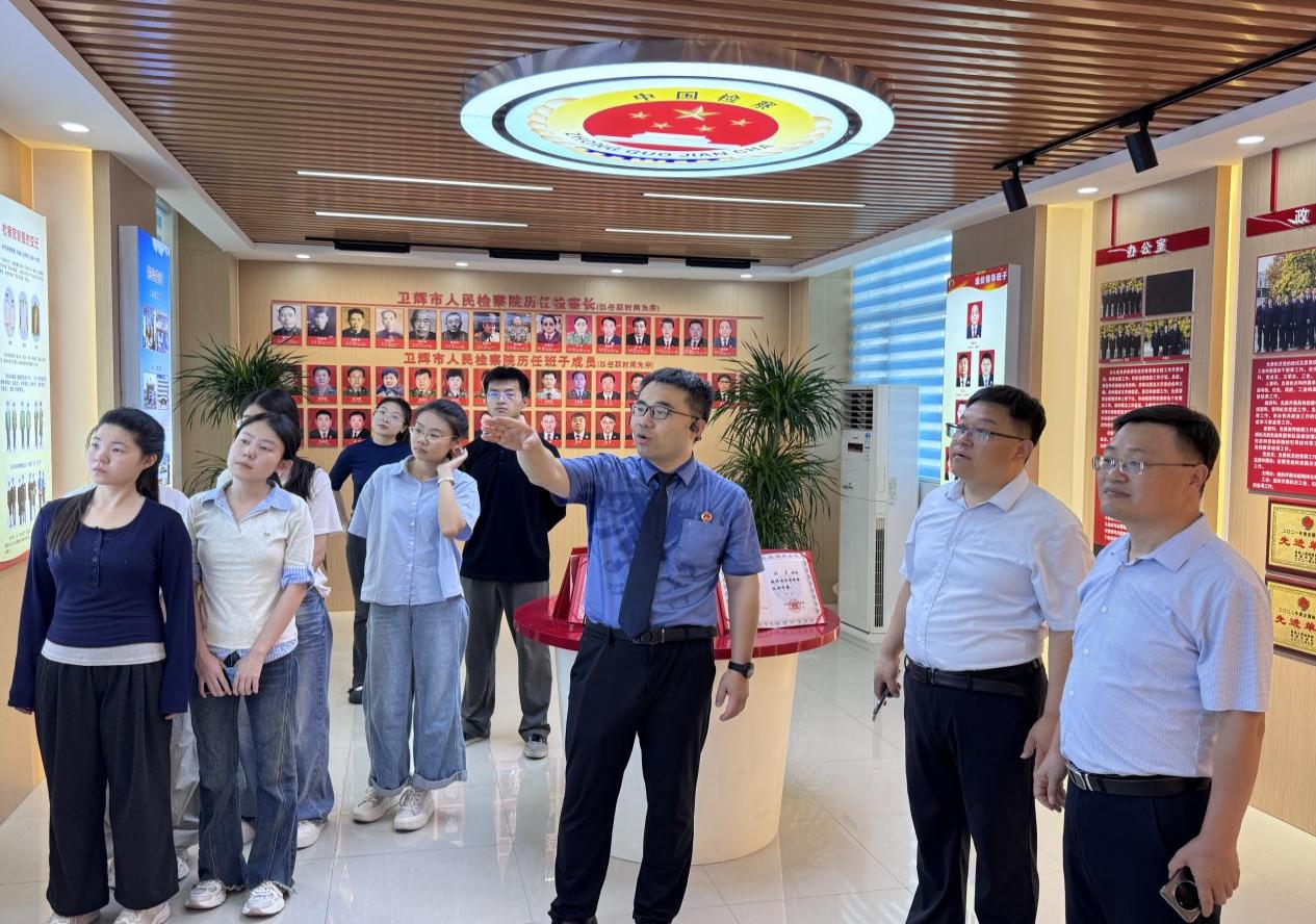 揭牌仪式开始前,刘丹副检察长带领公司师生参观了卫辉市人民检察院院史馆,并对卫检的历史足迹、改革发展历程、检察文化成绩进行了详细讲解。该活动加深了实习生们对卫检文化的认识和了解,使其对卫检文化有了更加直观的感受,也为其即将开始的实习生活打下了良好的基础。