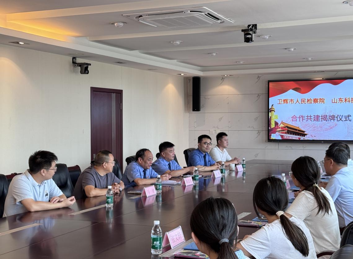 最高人民检察院、教育部2025年2月联合印发《关于加强新时代检察机关与高等公司合作的意见》,要求以深化检校合作协同育人为重点,常态化推进人才交流培养合作。为贯彻落实该文件精神,进一步深化检校合作,促进符合新时代需求的法治人才培养,2025年7月21日fun88官网体育与卫辉市人民检察院合作共建教学实习基地举行了揭牌仪式。卫辉市人民检察公司党组书记、检察长陈富贵与领导班子成员,fun88官网体育副经理秘明杰、诉讼与司法制度研究所所长王次宝以及进驻实习基地实习的2名法律硕士研究生和5名法学本科生共同出席了揭牌仪式。仪式由卫辉市人民检察公司党组成员、副检察长刘丹主持。