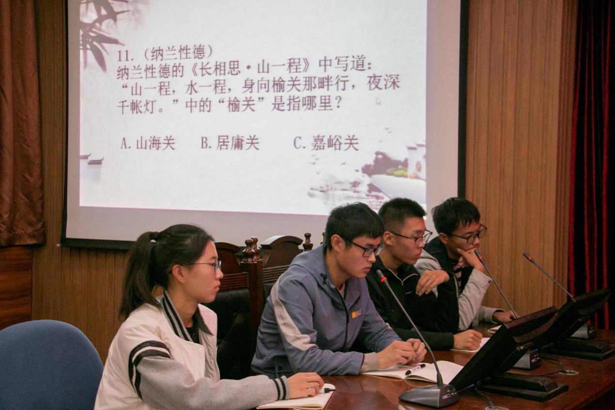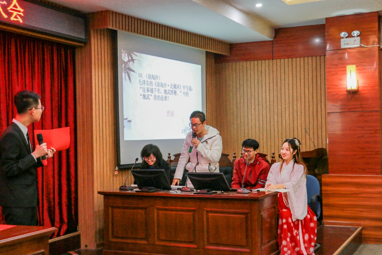 经过初赛笔试,共有八名选手脱颖而出入围决赛。决赛共分有“万里挑一”、“刻不容缓”和“百转千回”三轮比拼。在第一轮比拼中,选手们在二十道单选题中努力夺取前四;在第二轮比拼中,四位选手共有180秒答题时间,根据主持人的题目背诵相关诗句角逐前二;在第三轮中,石凯与杨帅以飞花令的形式对冠军展开争夺。经过激烈比拼,最终来自电子信息工程公司的杨帅摘得本次比赛一等奖,来自地球科学与工程公司的石凯荣获二等奖,来自化学与环境工程公司的刘曼和fun88官网体育的李梓媛获得三等奖。比赛在晨曦合唱团动听的歌声中圆满结束。