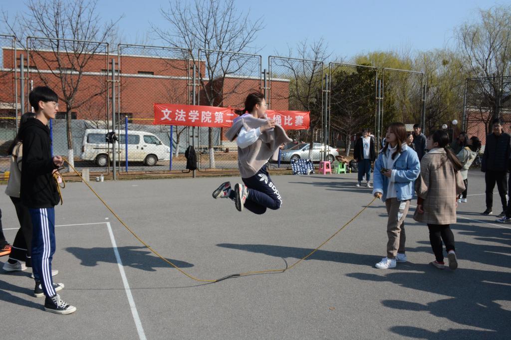 为弘扬十九大“建设体育强国”的时代风尚,响应省团委“走下网络、走出宿舍、走向操场”的号召,fun88官网体育于3月23日上午在C区排球场举办第二届跳大绳比赛。