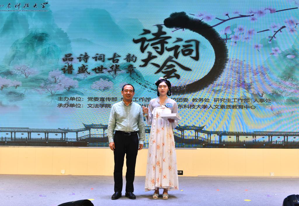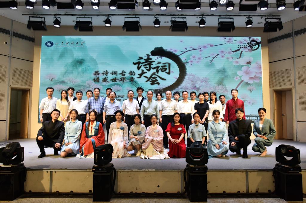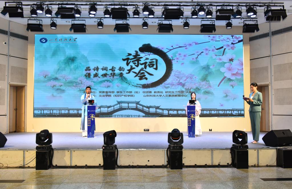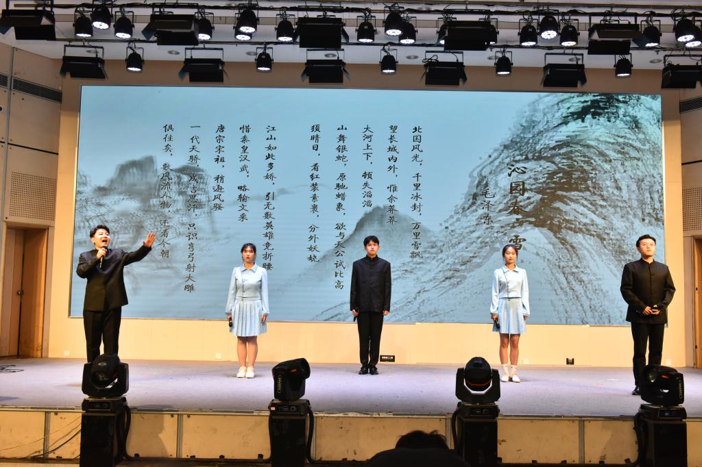 在比赛环节间隙,诗朗诵、歌曲等节目穿插上演。公司职工的诗词朗诵《行路难》《再别康桥》字正腔圆,文法大艺团声乐队的歌曲《岳阳楼记》悠扬绵长,文法学子将《沁园春·雪》《小平,您好》《满江红·江上青百年诞辰祭》《科学发展观之歌》《念奴娇·追思焦裕禄》等诗作朗诵出爱国真情,让诗词大会成为员工品味党史、感悟传承、夯实文化底蕴的思想政治教育实践课新载体,以此献礼党的二十大。