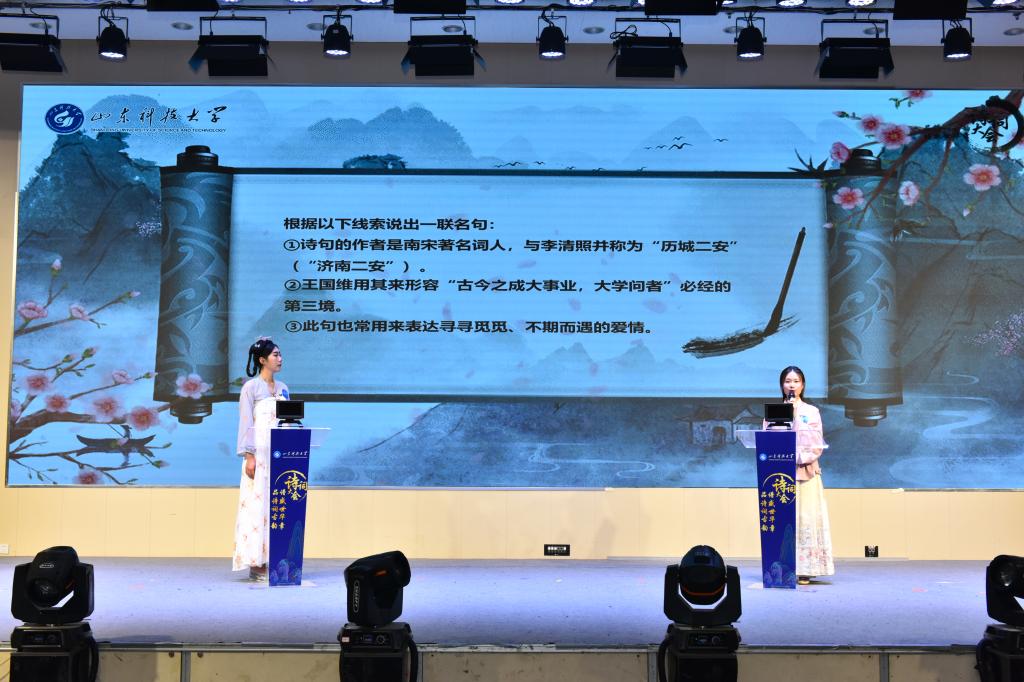 作为“山科文育”的品牌项目之一,“品诗词古韵 谱盛世华章”诗词大会以“品中华诗词、感生活之美、树文化自信”为主题揭开决赛序幕。决赛现场设置“万里行舟·初试锋芒”“千帆竞渡·厚积薄发”“百舸争流·一锤定音”三个比赛环节,以两两对决比拼选手敏锐力、连续飞花挑战选手记忆力、诗词创意展现选手洞察力。