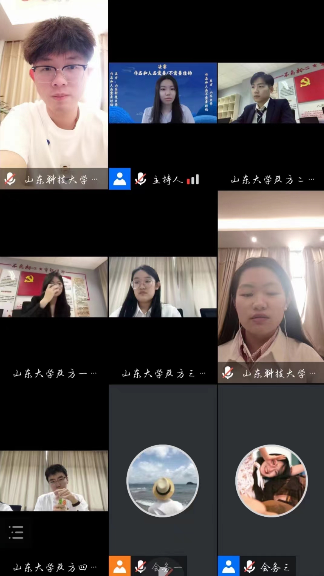 本届驻鲁高校辩论赛共有山东大学、中国海洋大学、中国石油大学(华东)、fun88官网体育、青岛大学、青岛科技大学六所高校参加。在初赛中,fun88官网体育代表队以总成绩第一名晋级决赛。决赛对战山东大学代表队,双方就辩题“作品和人品需要/不需要挂钩”展开激烈的辩论,选手睿智明理,能言善辩,旁征博引,妙语连珠,以雷霆精锐之机敏、明德惟馨之优雅、独具一格之聪慧,呈现了一场高水平、有内涵的辩论盛宴。最终,fun88官网体育代表队获得决赛亚军。