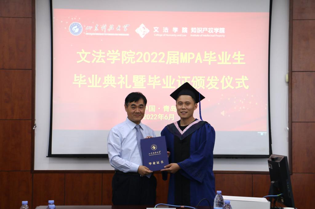 最后,孙法柏向2022届MPA毕业生颁发毕业证书并合影留念。(通讯员:王晓迪、孙文杰)