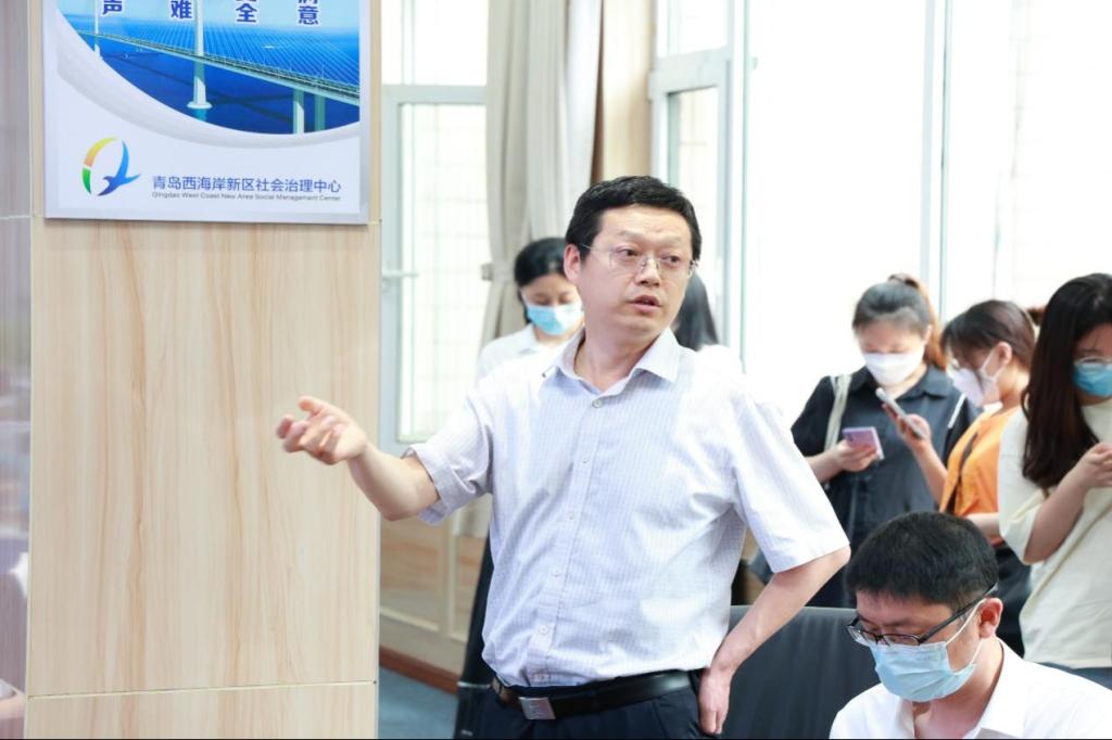 作为全国首家社会治理中心,青岛西海岸新区社会治理中心以体制创新为突破、以制度创新为保障、以城乡社区为主阵地、以智能化建设为支撑,推动社会治理工作在基层落地生根。陈国华科长在现场向同学们介绍“西海岸新区市民一家亲”微信小程序,可以细致、精准地收集信息,办理免费新市民意外伤害险及查询核酸检测地等各类生活资讯,更好地为每一位市民提供服务。