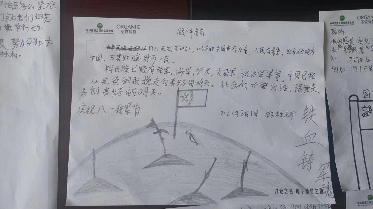 在中国人民解放军建军95周年之际,星火公益协会结合疫情防控新要求,联动各地队员协作开展了“以少年之名·筑强军之梦”系列活动。对青少年而言,这是一次沉浸式的红色洗礼,他们心中播下的红色种子终将萌发新芽,亭亭如盖;对支教队员而言,这是一次理想信念的赋能,他们对伟大的祖国和人民军队的自信心、自豪感日益增强;对星火公益协会而言,这是一次组织力量的凝聚,星火公益将传承红色基因,发扬爱国精神,以更昂扬的斗志、更务实的作风开展公益活动,以饱满的精神状态迎接党的二十大胜利召开。(通讯员:王晓迪、隋金洋、李达、李欣萍)