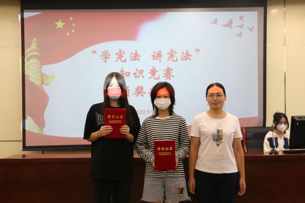 在决赛过程中,参赛选手被随机分为六组,比赛分为必答题、抢答题和逻辑题三个环节,旨在切实充分考察参赛选手的宪法知识素养,同时也对选手的临场反应能力和心理素质提出了更高的要求。在抢答环节,法学2021-2班孙雨佳同学连续迅速抢答,表现出丰厚的宪法知识功底;在逻辑题环节,法学2020-3班毕佳同学逻辑清晰,思维活跃,一马当先。经过三个环节的激烈角逐,王心怡、毕佳荣获一等奖。