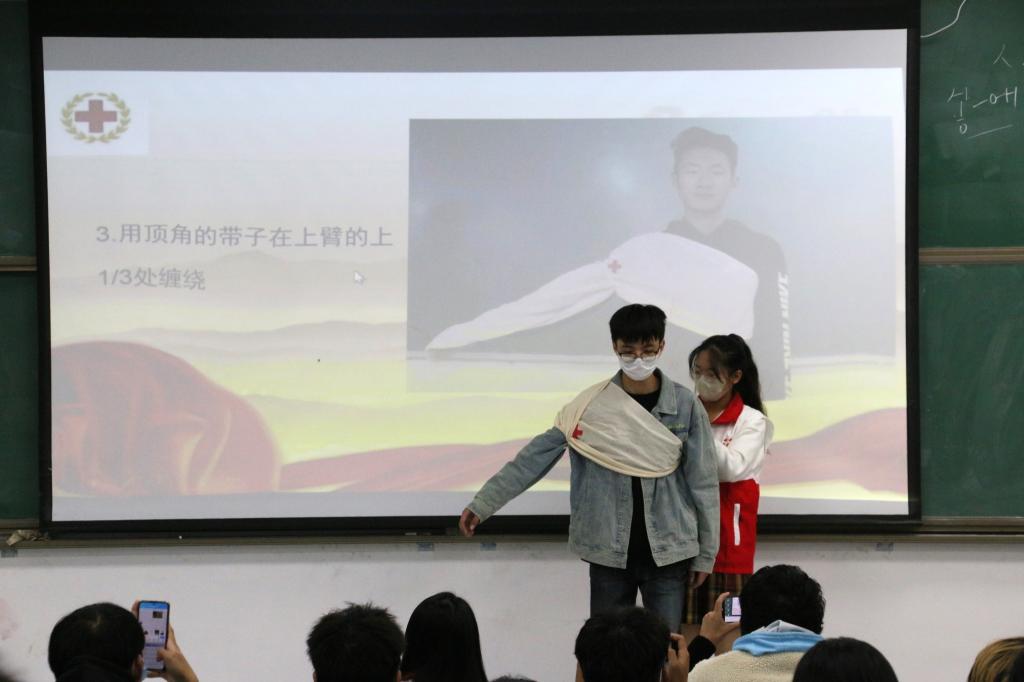 为提高员工安全意识,增强同学们应对突发事件和意外伤害事故的应急救援和自救互救能力,11月20日,fun88官网体育志愿实践部在J7-103举办应急救护和安全避险知识讲座,集团红十字会、校团委实践部同学担任宣讲人。