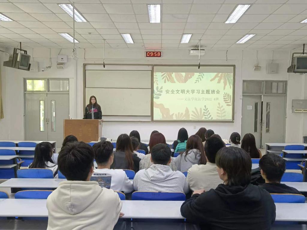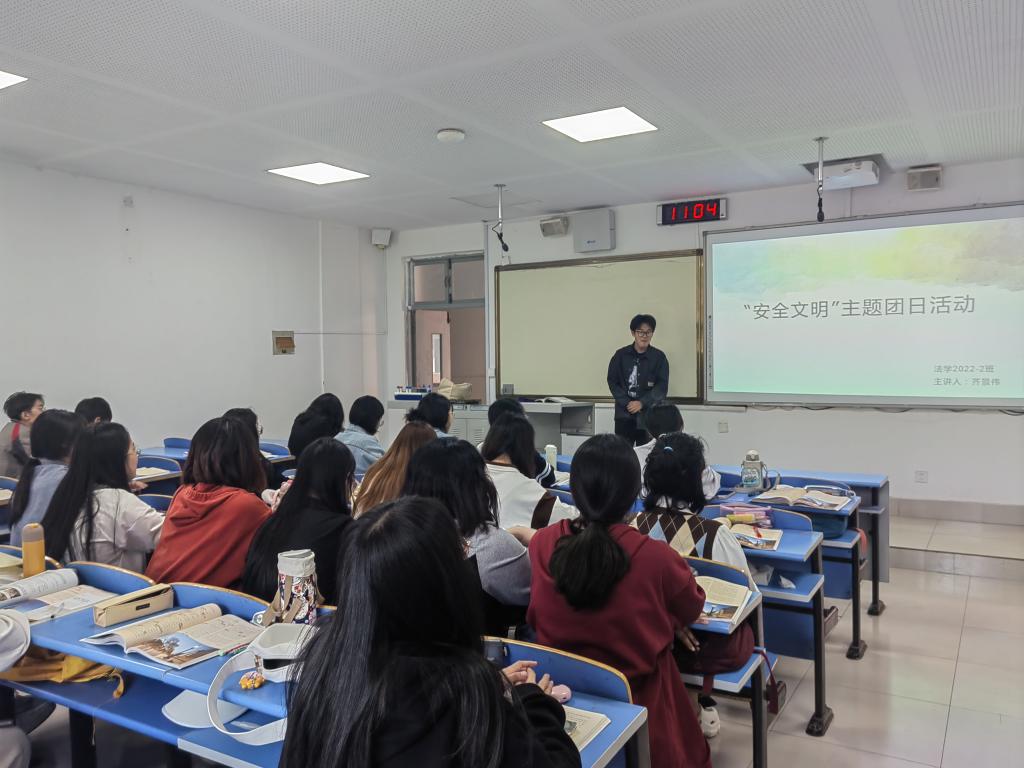 为提高同学们的安全防范意识和能力,持续营造安全、和谐文明的教学和生活环境,近日,2022级本科生组织开展安全文明教育主题班会和主题团日活动。