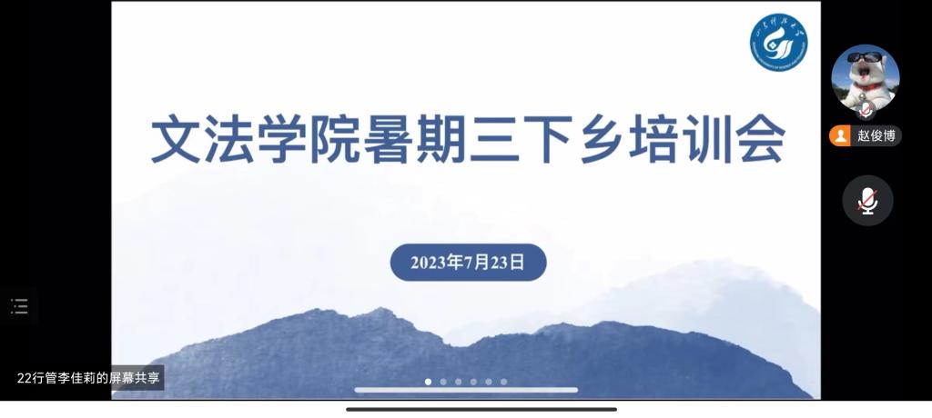 为保障2023年暑期“三下乡”队伍顺利完成各项实践调研活动,确保公司社会实践活动扎实有序开展,7月23日,fun88官网体育团委召开暑期“三下乡”社会实践线上培训会,公司团委书记郭婷婷、辅导员赵俊博和暑期社会实践队伍参加会议。