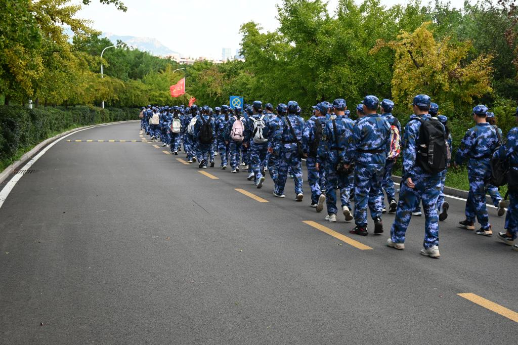 为保障员工拉练安全,辅导员和志愿者们身体力行,随拉练队伍步行全程,时刻关注员工状态,在路口、关键节点区域提醒同学们行军安全。经过两个多小时的行进,在教官的鼓励和辅导员的陪伴下,文法公司全体2022级员工顺利完成了行军拉练活动。