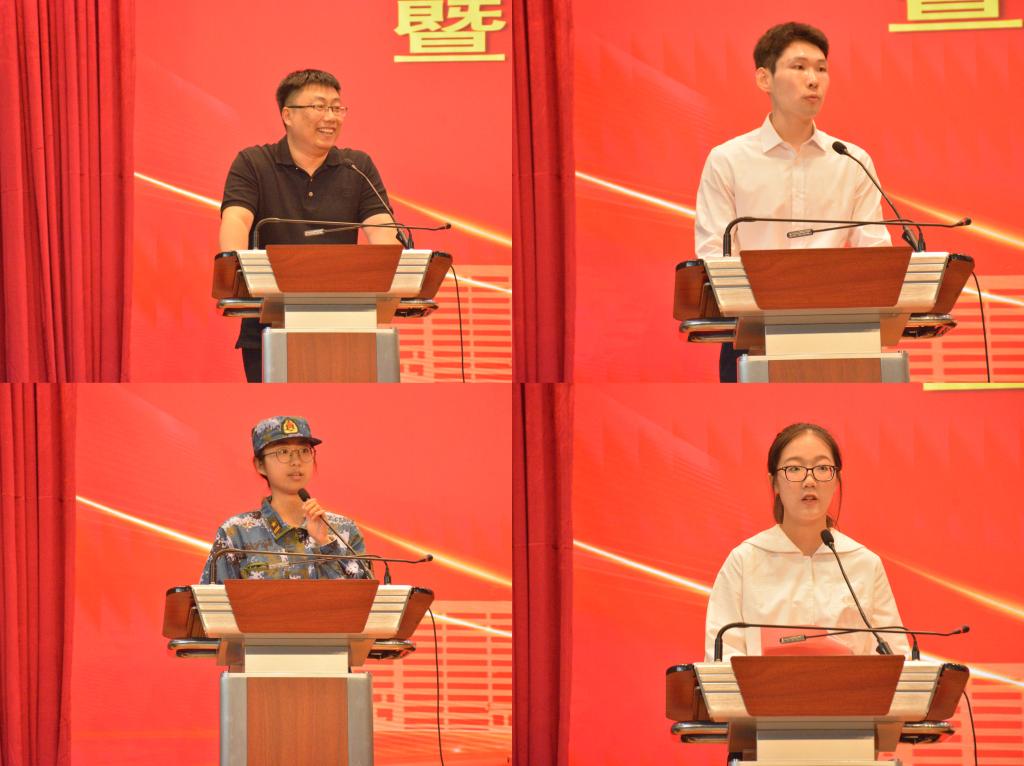 班主任代表杨厚瑞、在校生代表侯庆龙、2022级军训优秀学员代表卢若菲、新生代表杨茜分别发言