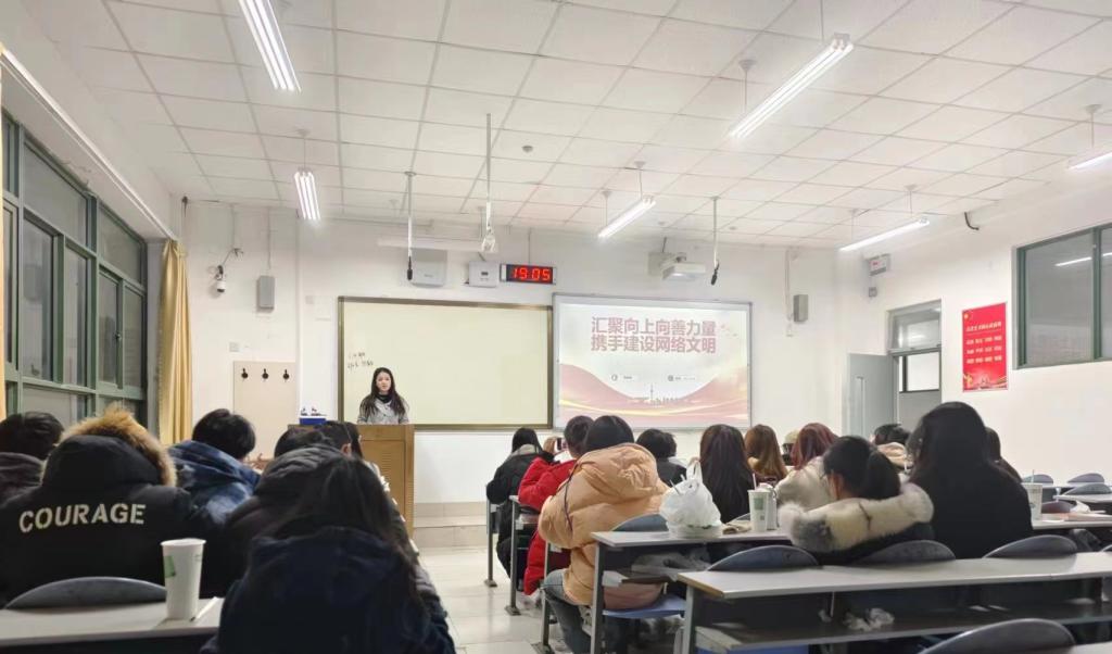 各班级围绕“网络文明素养与网络安全教育”开展了形式多样的教育活动。汉语言文学2023级班长陈俊妍就校园网络文明建设进行演讲,她结合警示教育案例,使同学们做到依法上网、文明上网、安全上网、健康上网,成为具有网络文明素养的新时代老员工。通过开展网络安全知识学习,增强同学们分析辨别信息真伪的能力,不随意打开不明网站,不轻易在网上透露个人隐私和重要身份信息,引导同学们树立网络安全防范意识,防范各类网络诈骗。