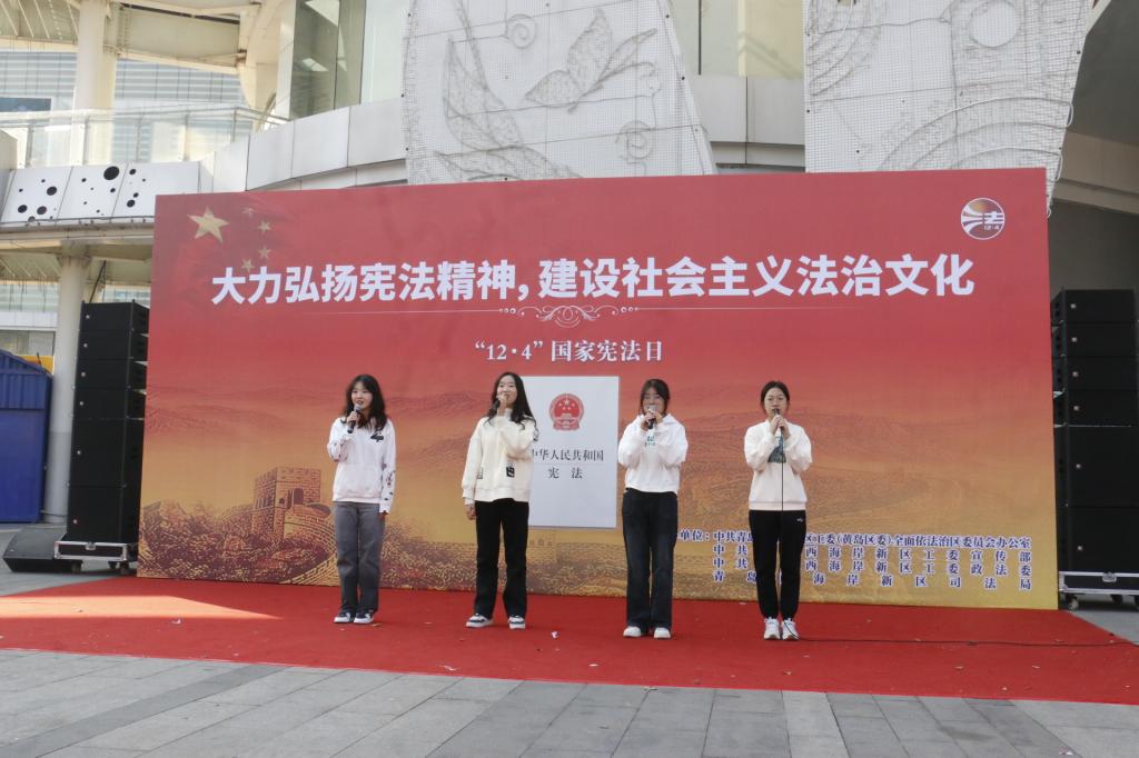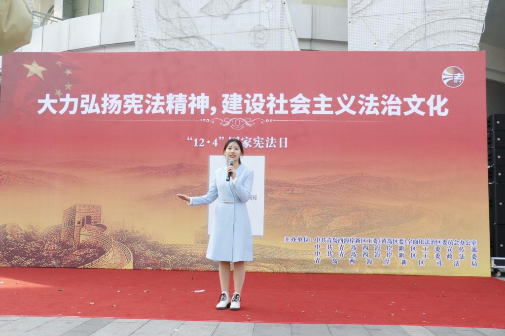 为深入学习贯彻习近平法治思想,大力弘扬宪法精神,维护宪法法律权威,12月4日,中共青岛西海岸新区工委(黄岛区委)全面依法治区委员会办公室、中共青岛西海岸新区工委宣传部、中共青岛西海岸新区工委政法委、青岛西海岸新区司法局联合主办2023年“12·4”国家宪法日集中宣传活动,fun88官网体育宪法宣讲团受邀参加。