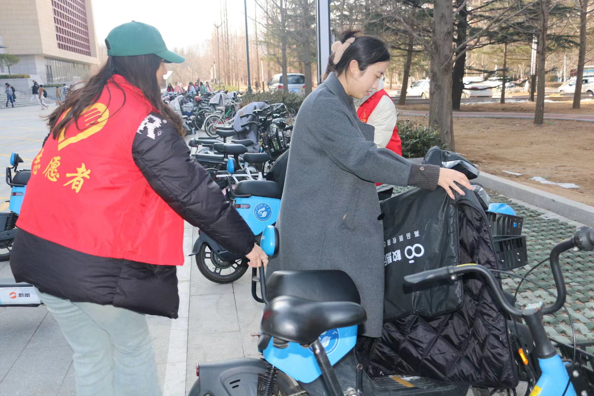 志愿者们以实际行动践行文明骑行,有序停放共享单车,传递共享文明、绿色出行的健康理念,倡导广大师生行动起来,做文明出行的传播者和践行者,为文明校园建设贡献青春力量。(通讯员:潘宇豪,褚宇璇;摄影:李佳昕,王凤蓉)