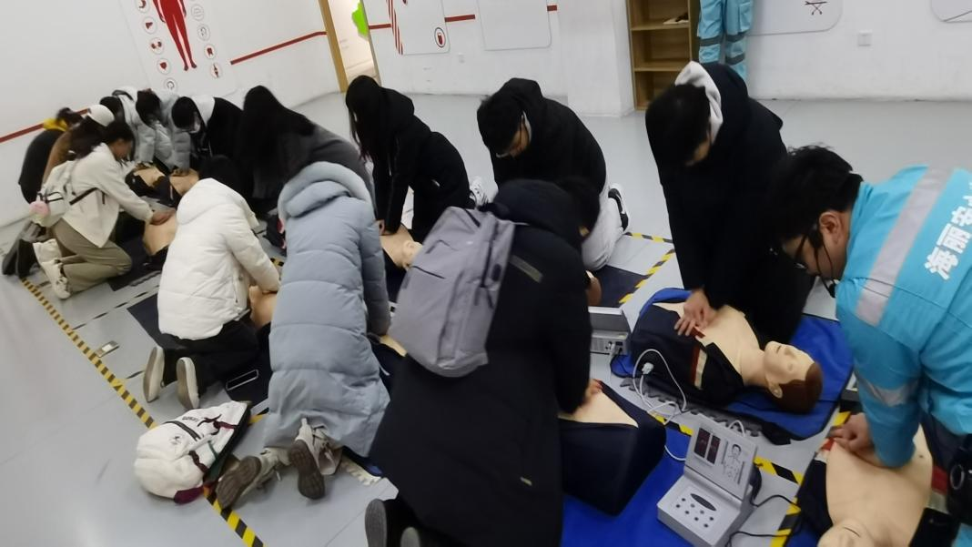 讲解员给同学们介绍了医疗急救体验馆基本情况,讲解各类场所应急物资的储备与应用,重点介绍了各类安全应急知识,还为大家模拟讲解人工呼吸与海姆立克急救的注意要点。随后,同学们参观了馆内禁毒教育基地,在讲解员的引导下观看了禁毒知识展墙,有毒品模型展示、吸毒的主要危害及吸毒人员身体特征变化,生动地向大家展现了毒品的危险,同学们深刻地了解了我国的禁毒历史、认识到禁毒工作的艰辛与不易,对禁毒防毒知识有了更深入的了解。最后同学们参观了安全生产体验区和消防安全体验区,模拟体验VR场景救援逃生,亲身体验受灾现场灾害信息收集分析与救灾资源调配的全过程,通过亲身参与和体验,加深了对应急管理的理解,掌握了相应的救援逃生知识。