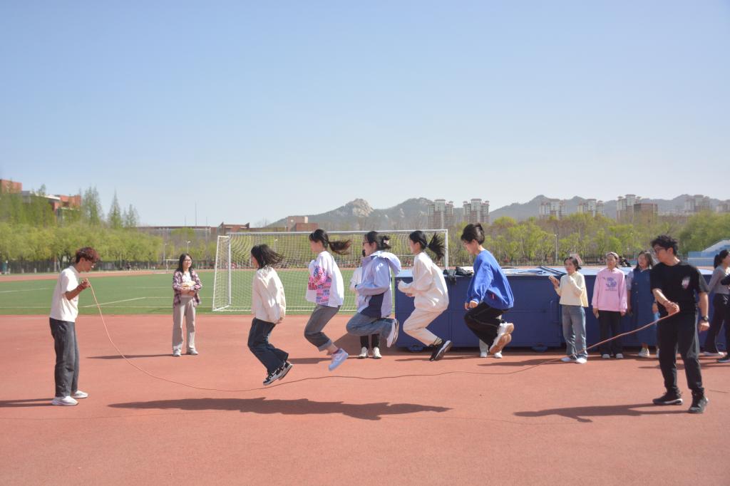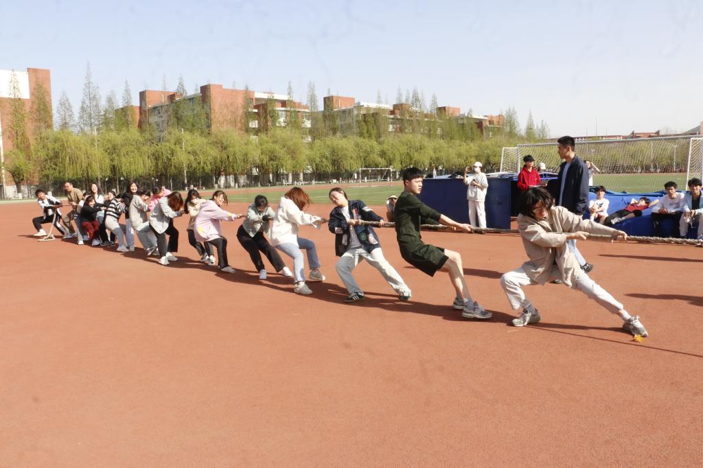 本次阳光体育节设置拔河、跳大绳、4×100m接力等活动,活动现场,同学们热情高涨,各项比赛精彩纷呈。跳大绳比赛同学们配合默契、动作敏捷,灵活跳跃在甩动的长绳之间。在4×100米接力比赛中,运动员们紧握接力棒,飞奔向前,跑道旁同学们加油呐喊,热情高涨。在一声高过一声的加油声中,选手们加快脚步,奋力冲刺。最后拔河比赛将活动推向了高潮,随着哨声响起,场上的同学们双手紧握长绳,团结协作,重心下移,凝视聚气,倾全力于一身,集合力于一绳,展现了文法学子团结协作、拼搏进取的精神风貌。现场呐喊助威声此起彼伏,为比赛增添了不少紧张与刺激。